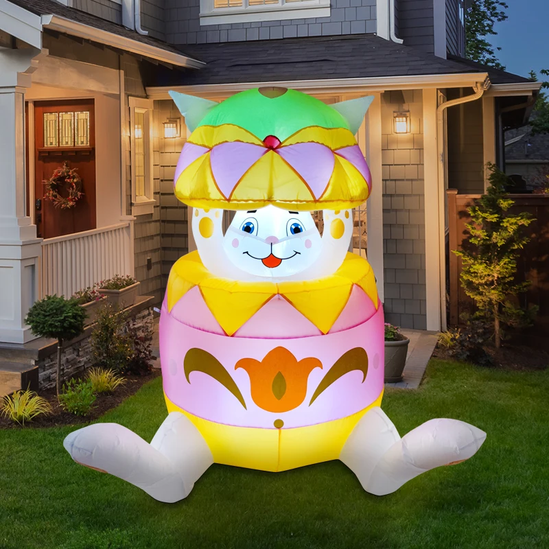 1.5M/4.9FT Easter DIY Inflatable Decoration Easter Egg Rabbit Model with LED Light Ornament for Holiday Garden Yard Outdoor