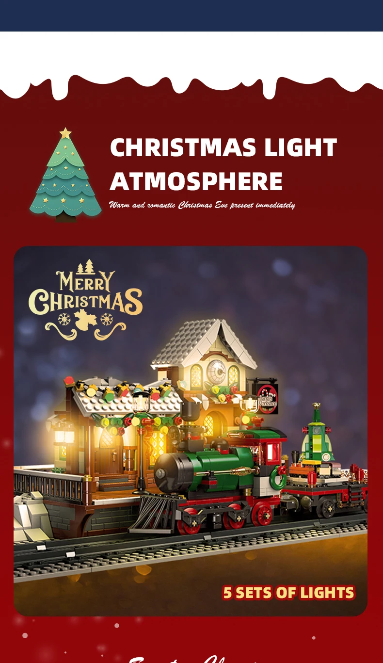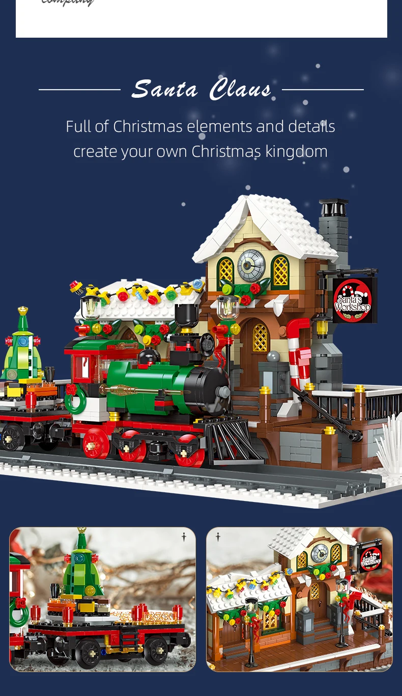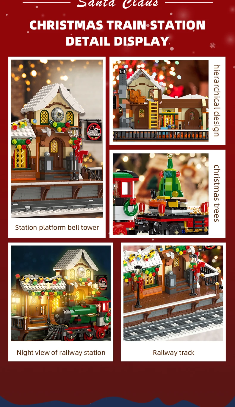 1362PCS Christmas Train Station Building Blocks Kit MOC City Street View Construction Bricks Toys Model Ideal Gifts For Christma