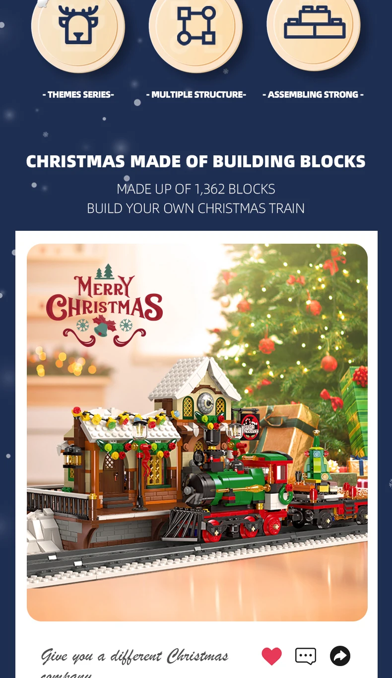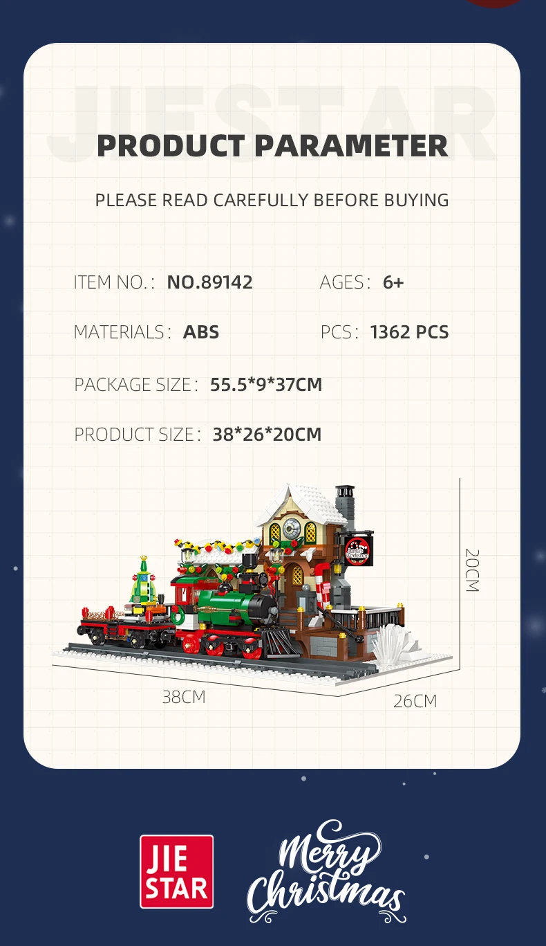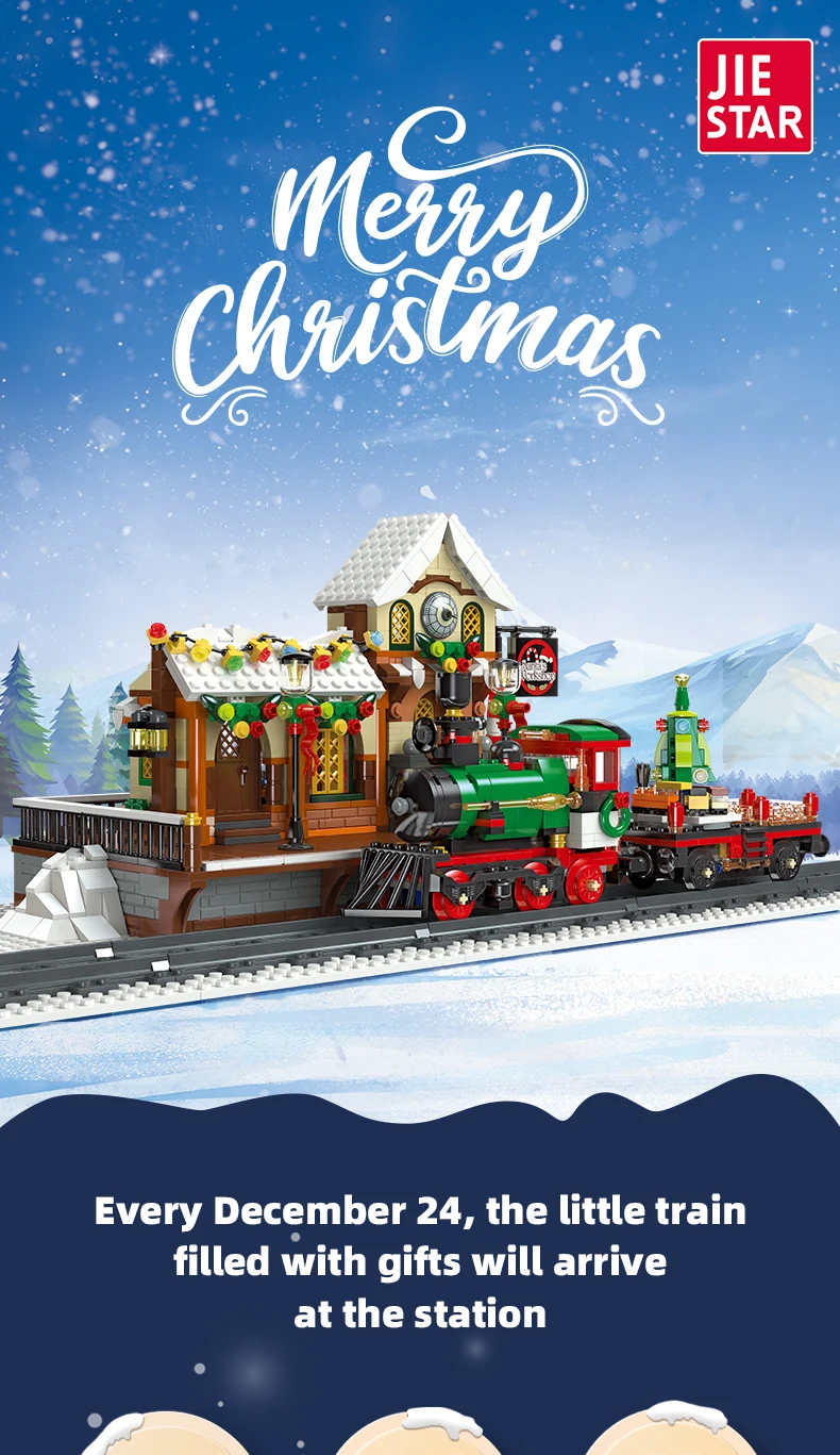 1362PCS Christmas Train Station Building Blocks Kit MOC City Street View Construction Bricks Toys Model Ideal Gifts For Christma