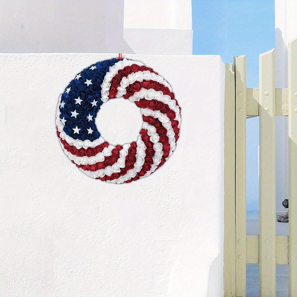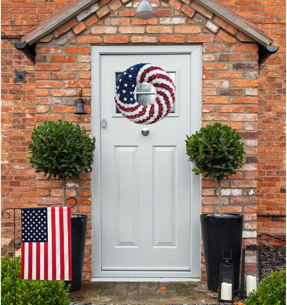 Composition: this roses patriotic wreath uses the same color scheme as the american flagMade of foam and metal, the color of the patriotic wreath is very bright and beautiful, it is easy to fade.Good choice for your front door decoration