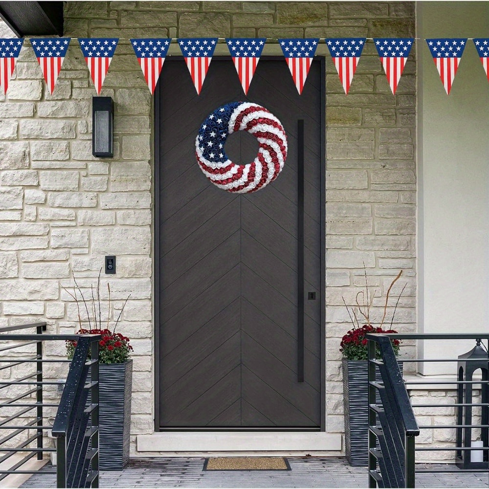 Great decor: it's the perfect independence day decoration for your home.With a bright color design, the red white and blue wreath can be used in everywhere.With this wreath, your room will be full of festive atmosphere