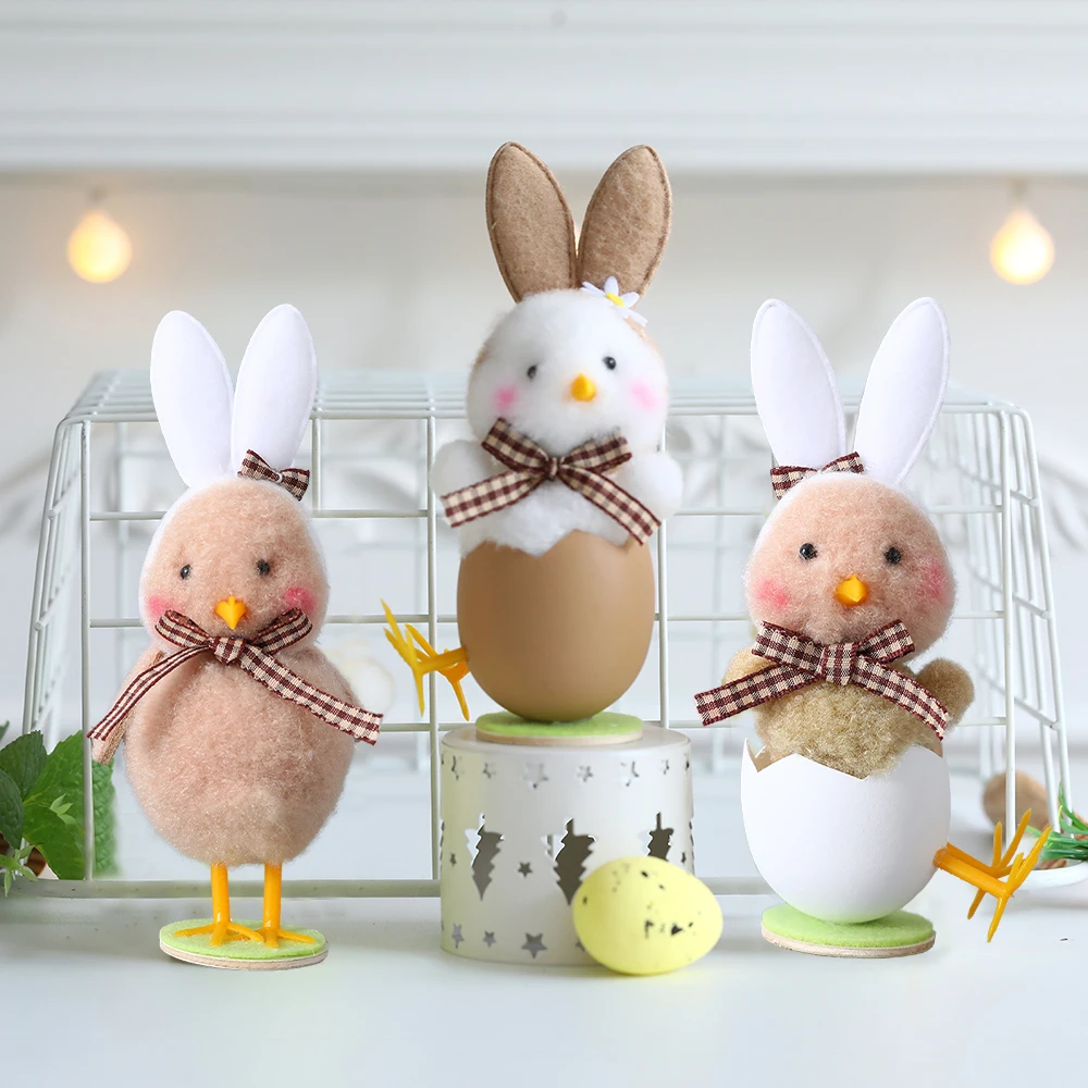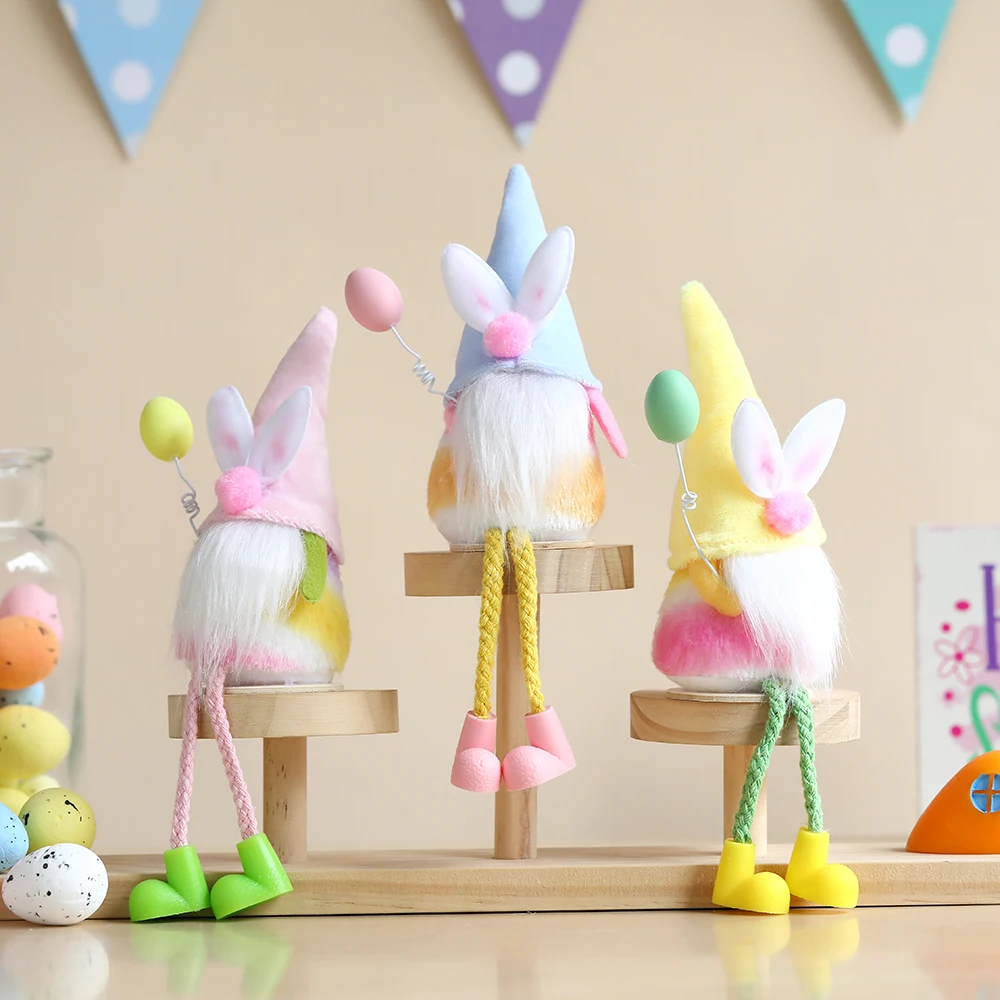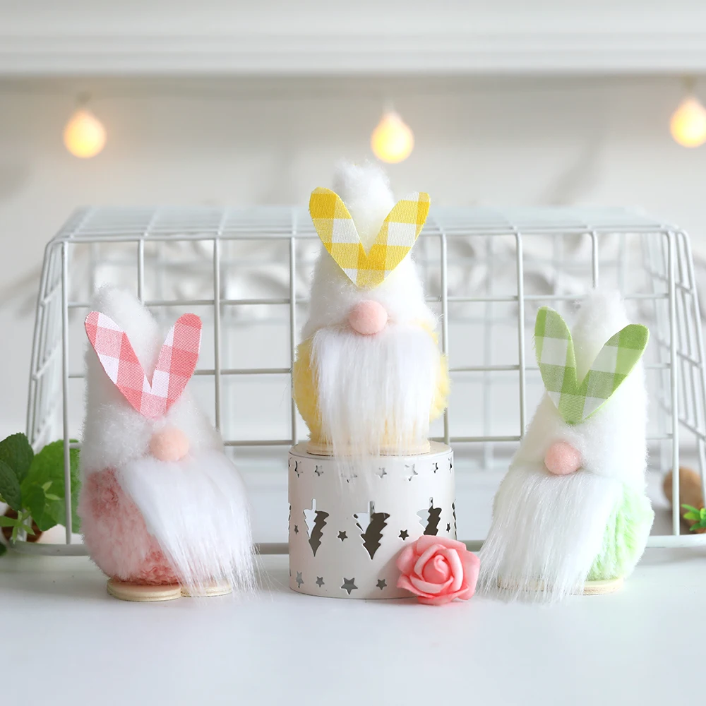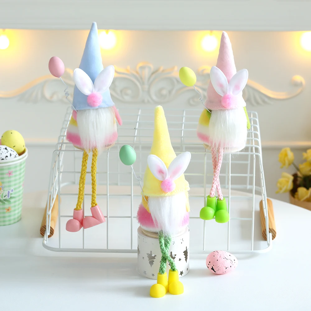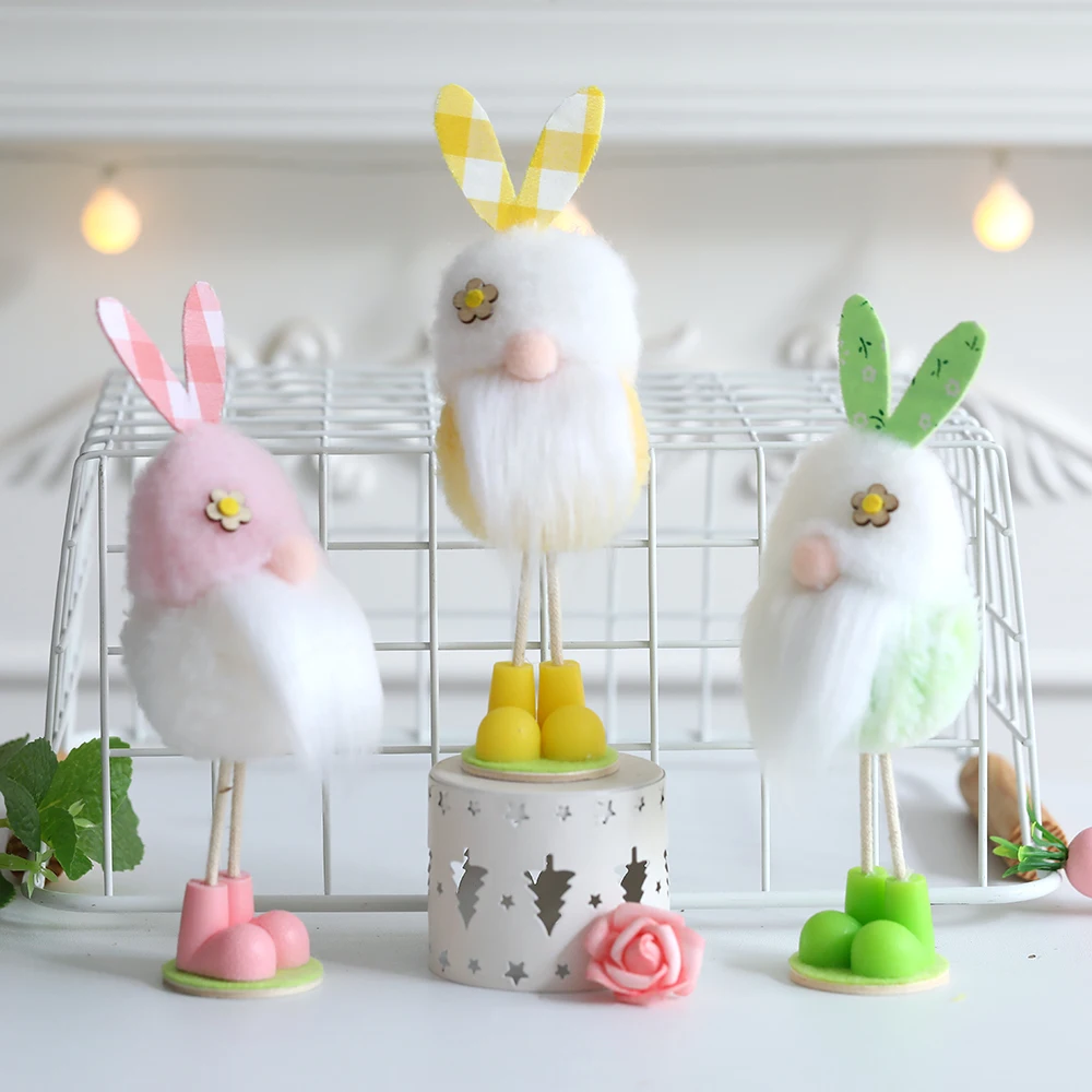 3Pcs/Set Easter Decoration Yellow Pink Green Blue Rabbit Ears Elf Ornament Figurine for Happy Easter Party Decoration Gifts