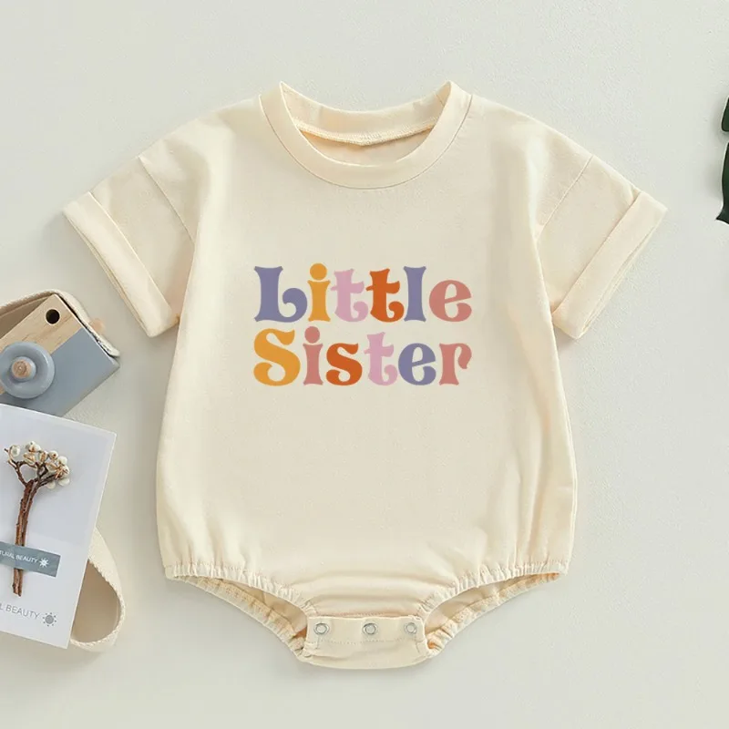 Big/Little Sister Print Family Matching Set Casual Retro Sisters Outfit Short Sleeve Kid T-shirt+Baby Bodysuit Summer Clothes
