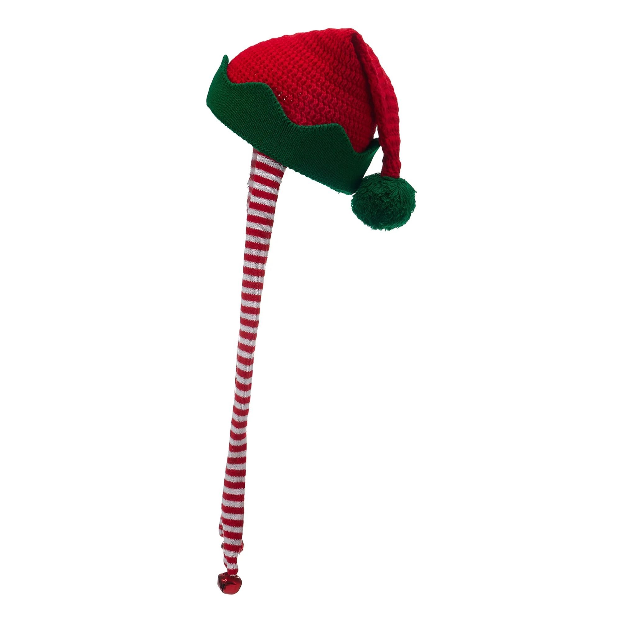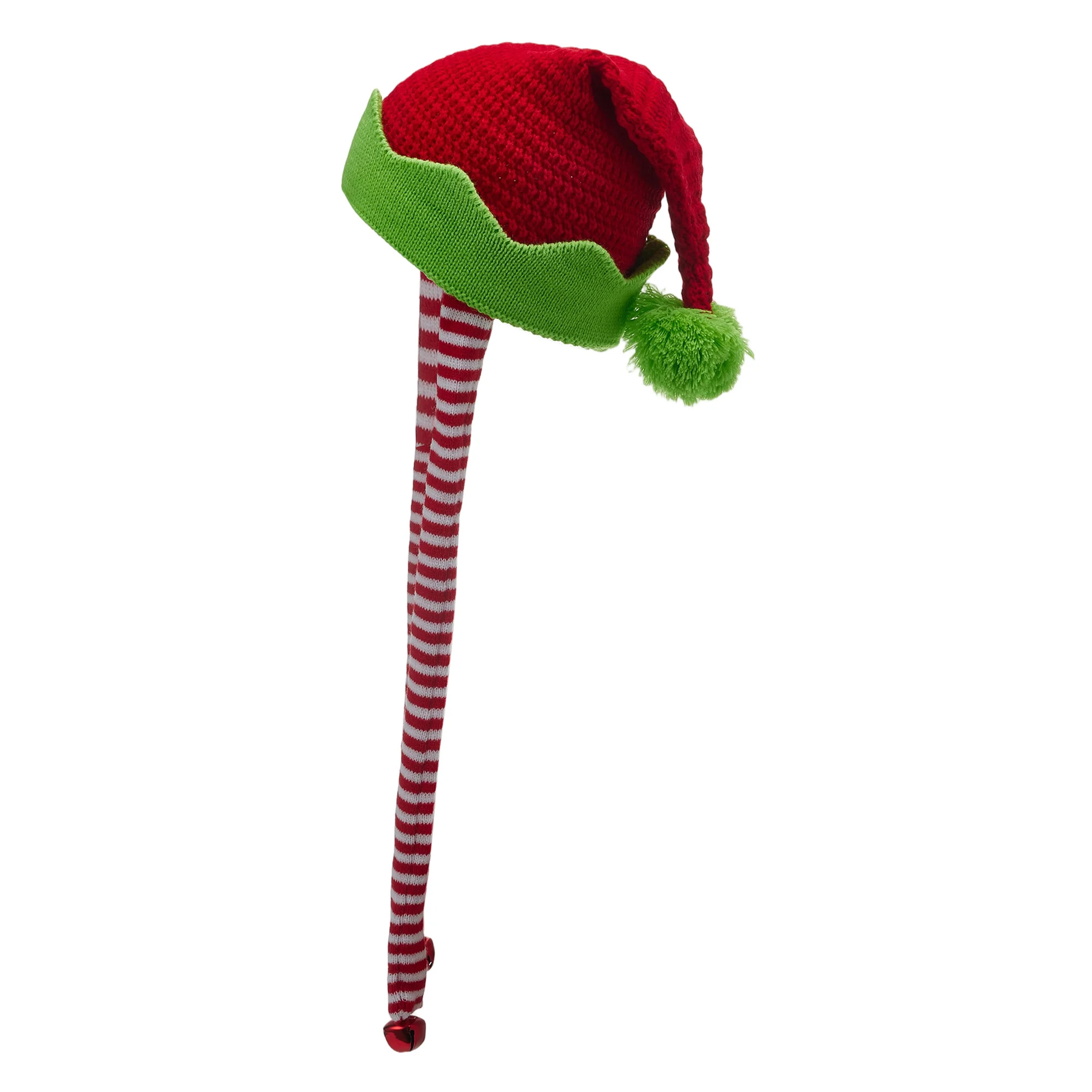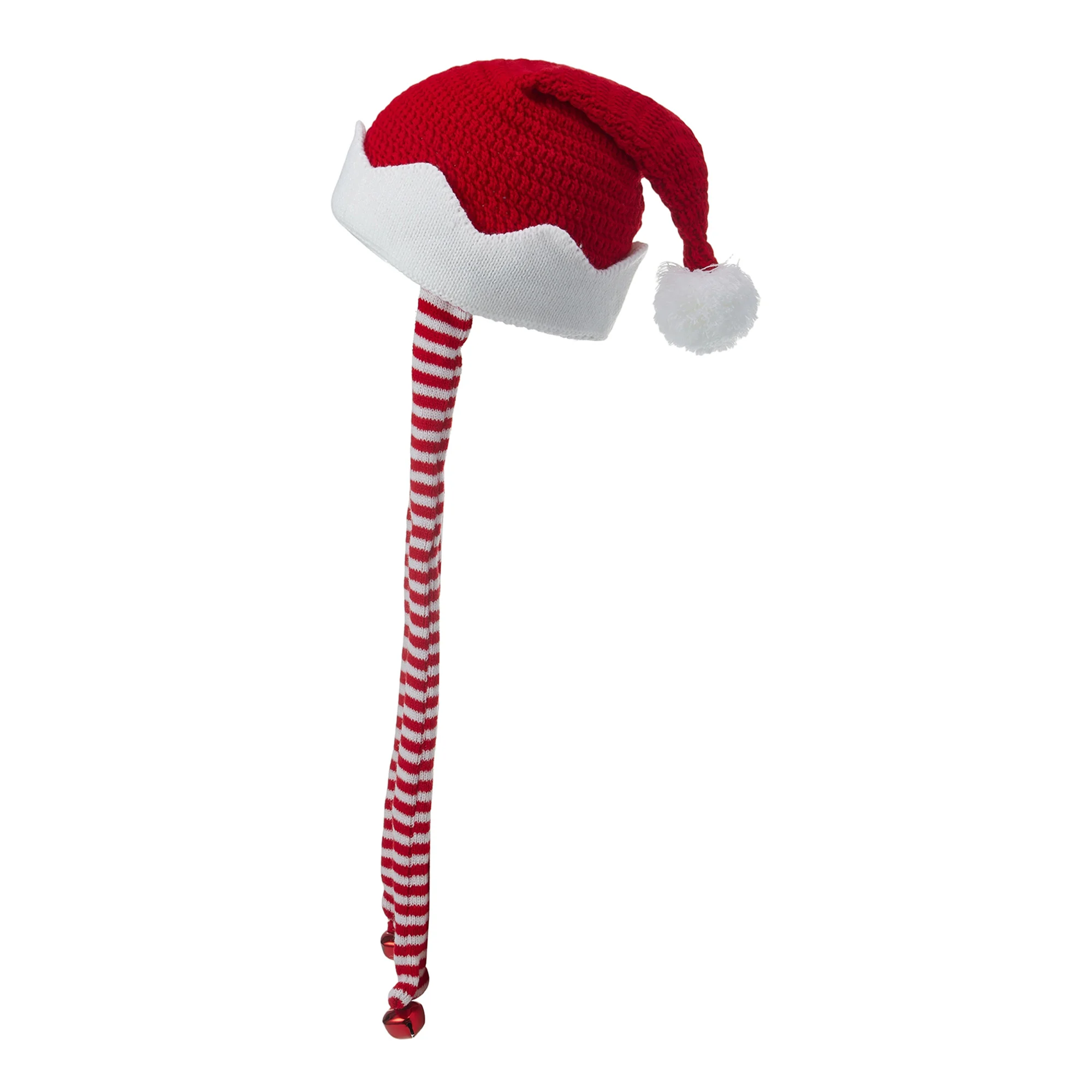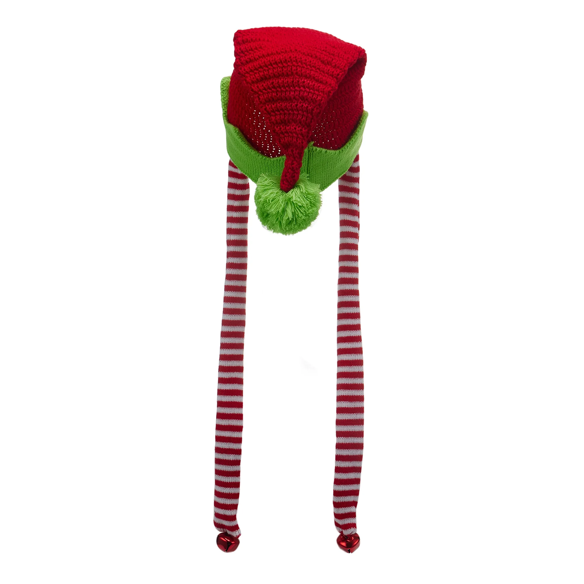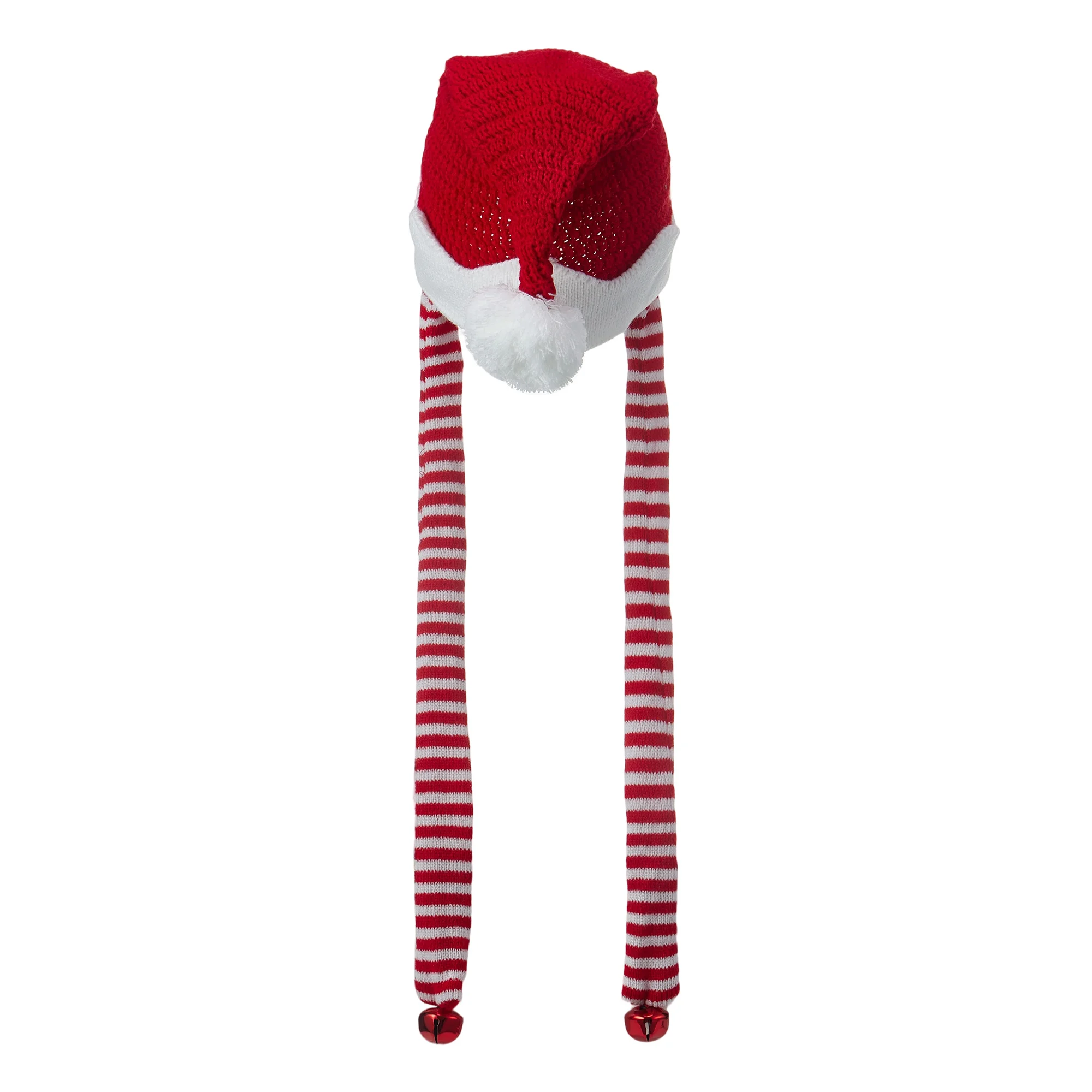 Christmas Hat with Striped Earflaps Bells Windproof Warm Party Knitted Elf Beanie for Adult