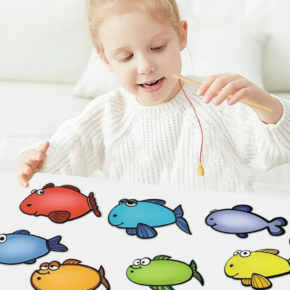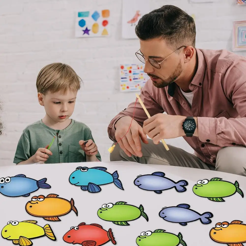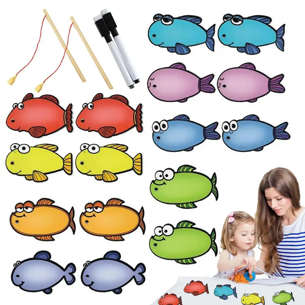 Fish Shaped Cards English Classroom Card Teaching Writable And Erasable Teaching Aids Magnetic Fishing Rod Toys For Family Games