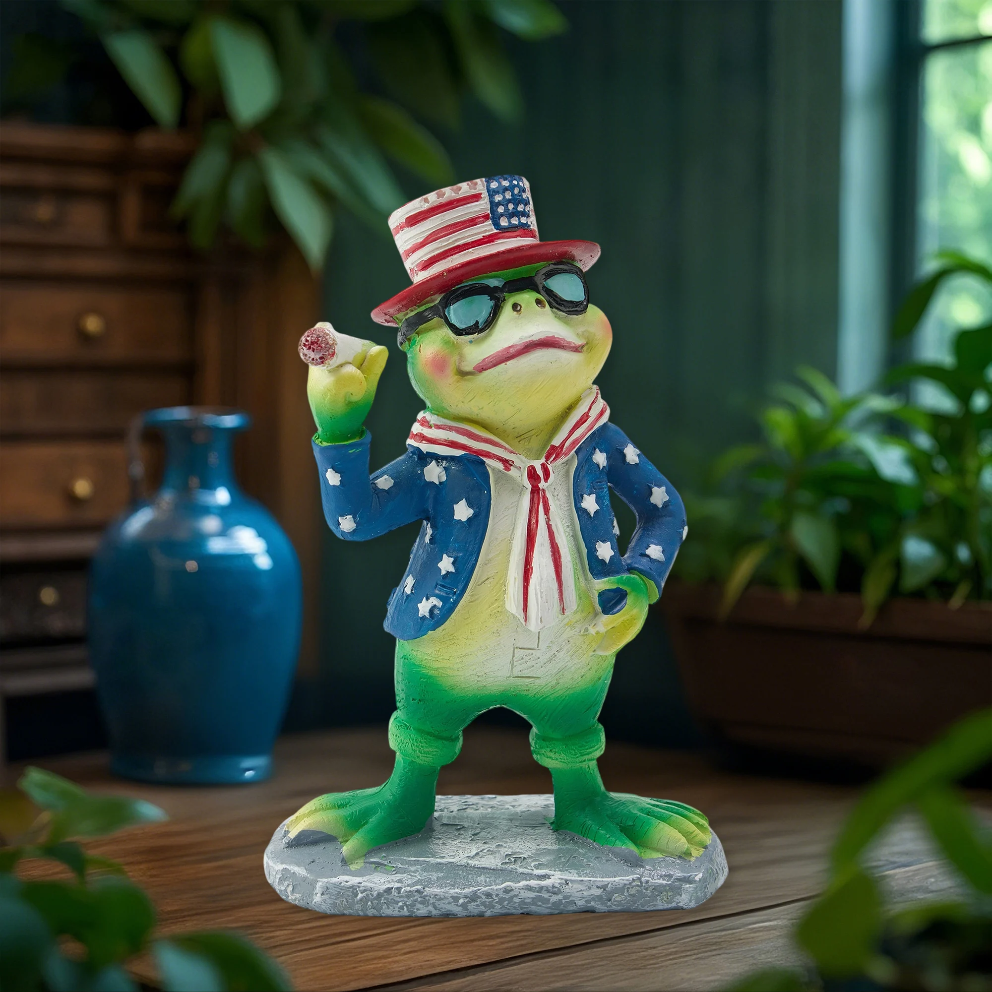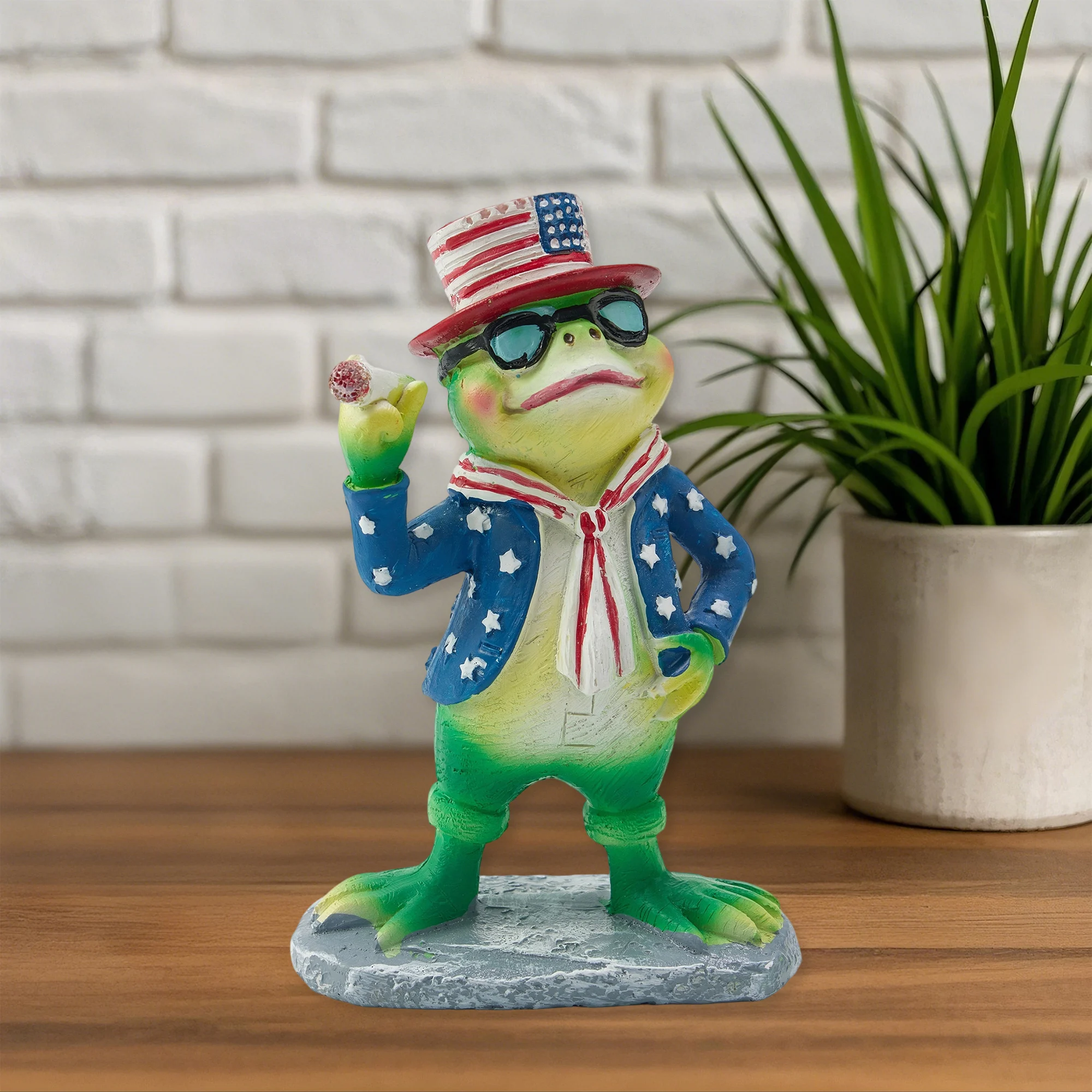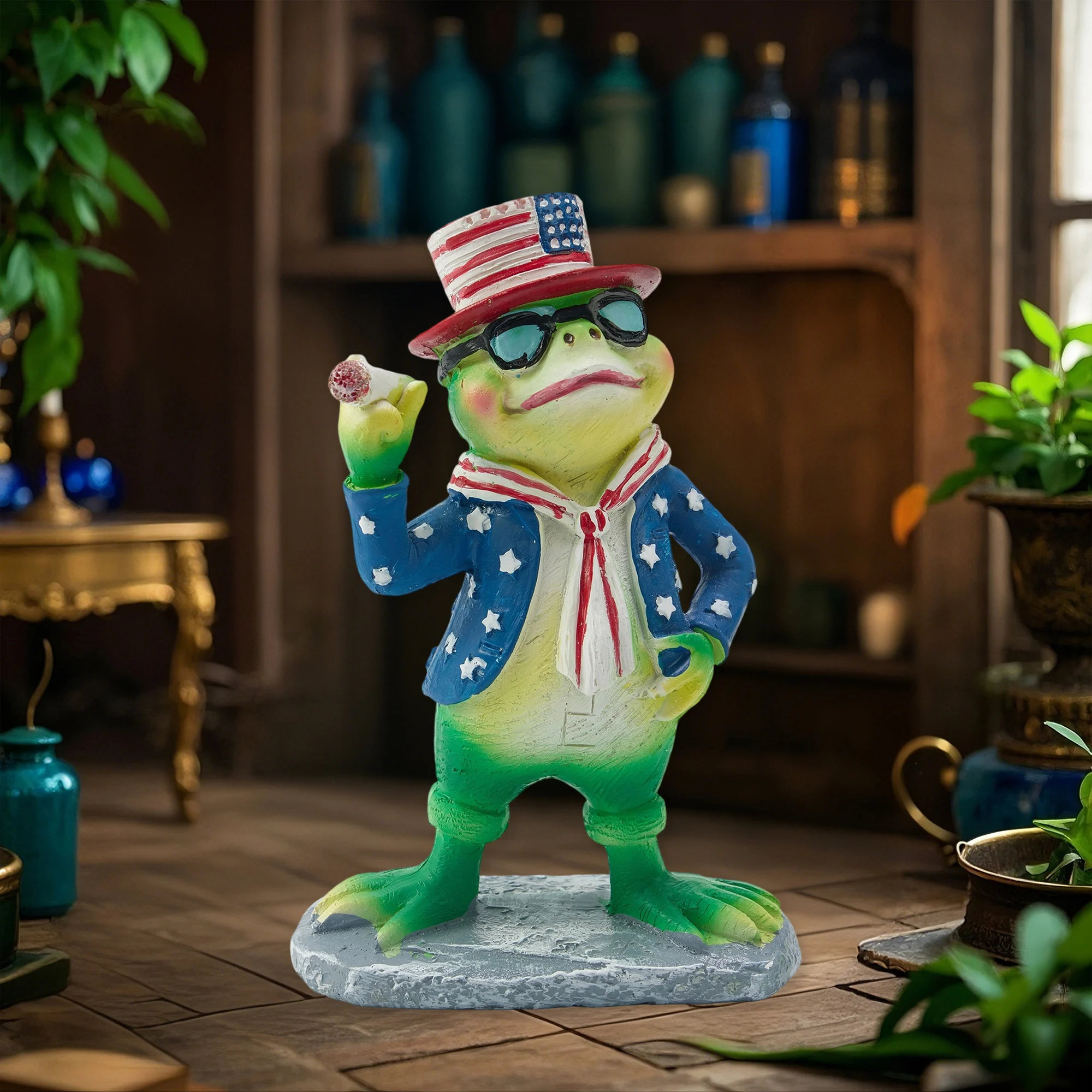 4th of July Figurine Funny Patriotic Frog Statue Resin Animal Decor for Home Indoor Outdoor Garden Decorations