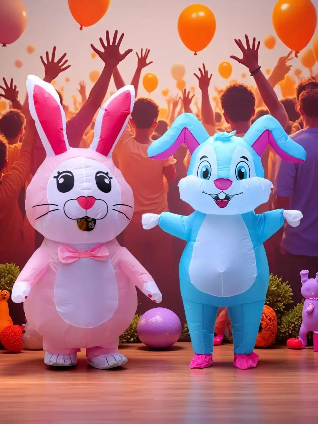 Halloween party inflatable rabbit costume - Fun pink and blue rabbit jumpsuit for Christmas celebrations, carnival role-playing,