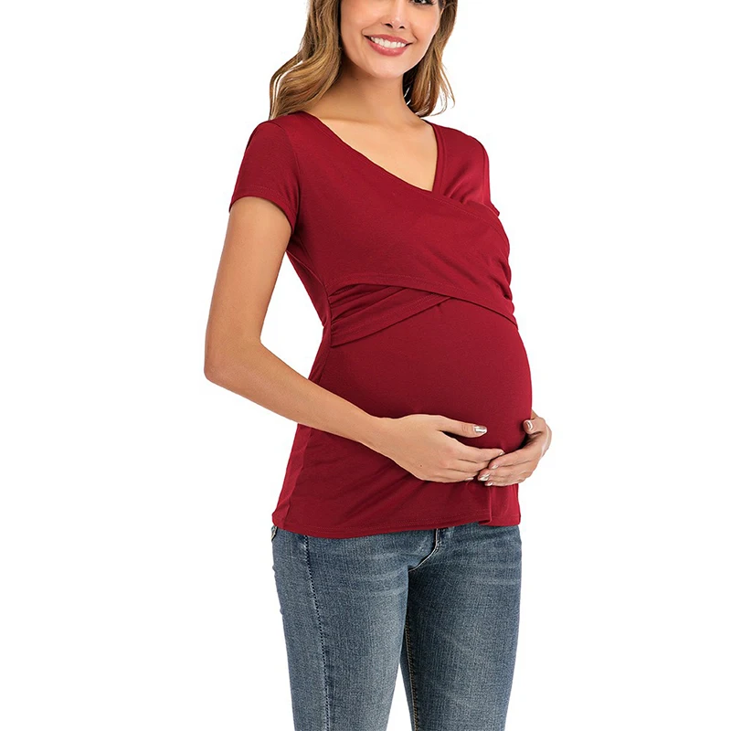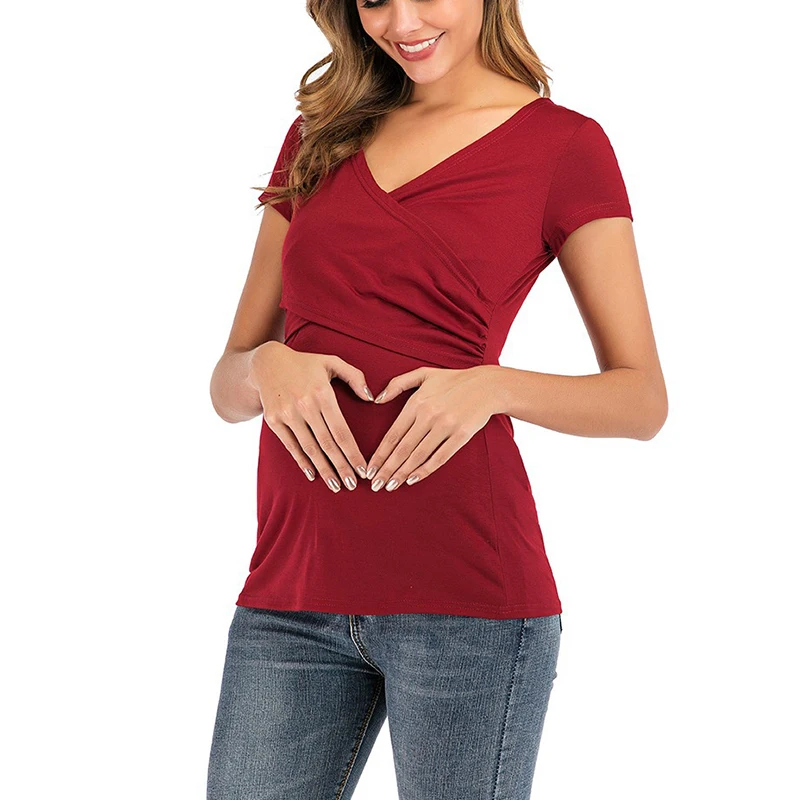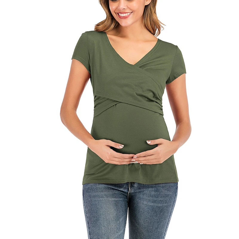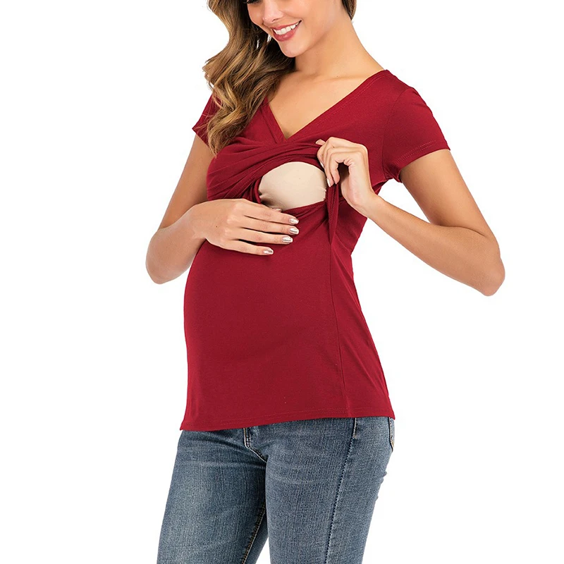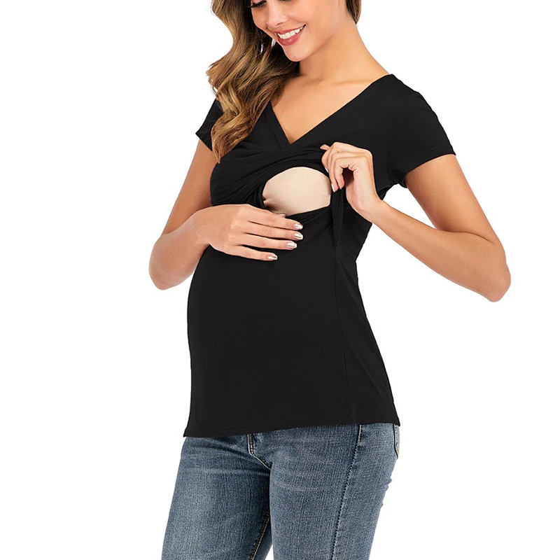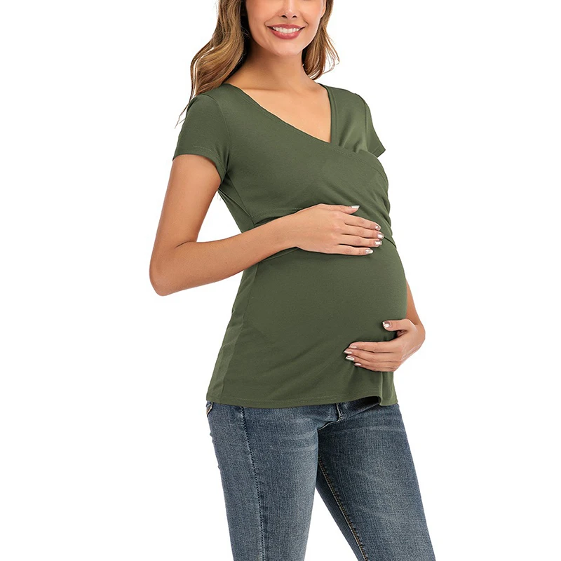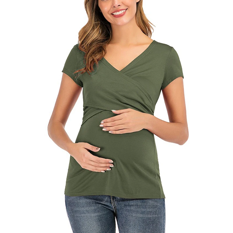 Maternity Breastfeeding T-Shirt for Pregnant Women Summer Solid V-Neck Sleeveless Vest Nursing Tops Maternity Clothes
