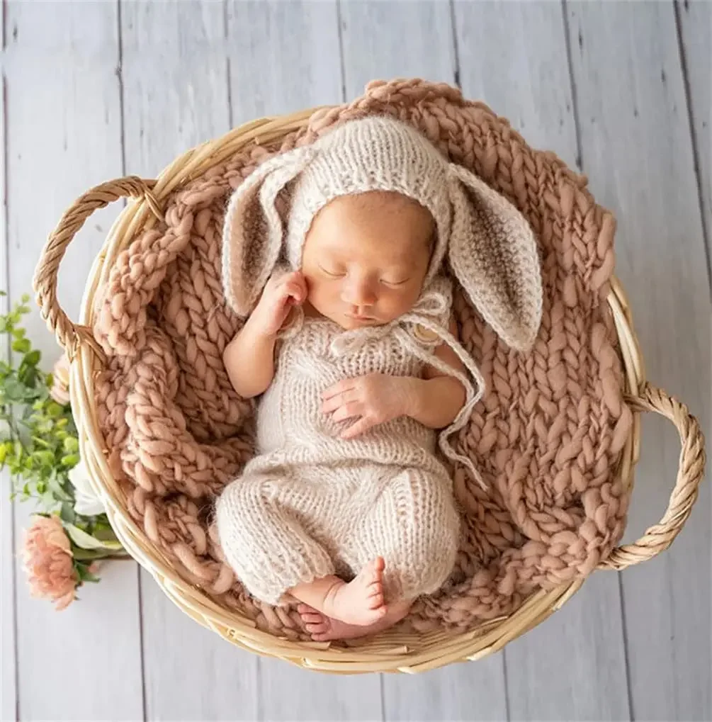 Newborn Baby Bunny Rabbit Crochet Knitted Photography Props Newborn Baby Outfits Diaper Costume Unisex Cute Infant Hat Pants