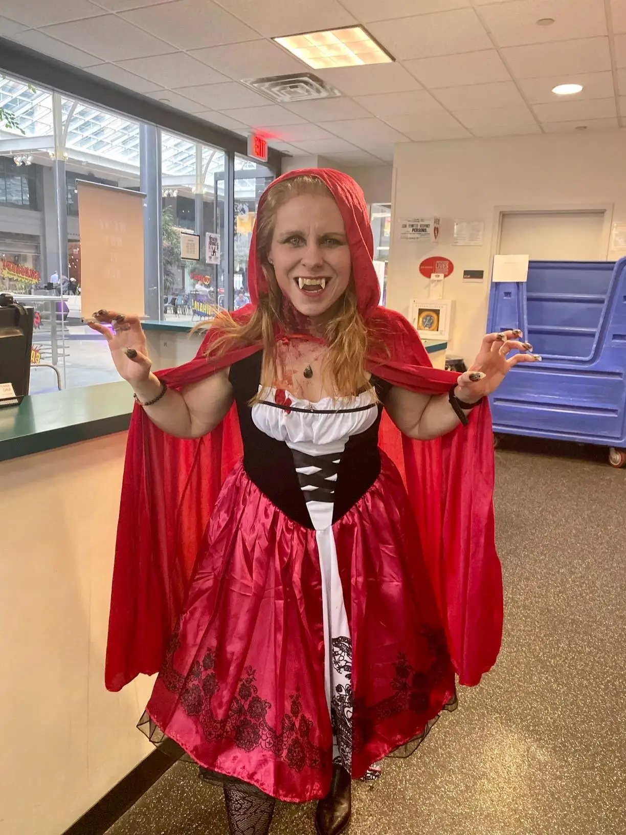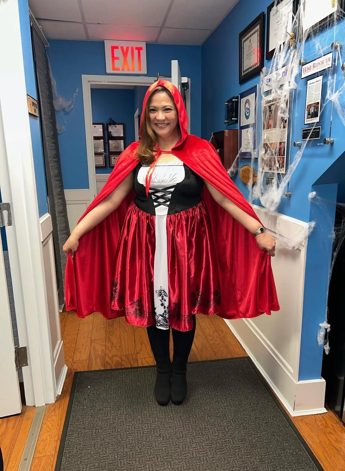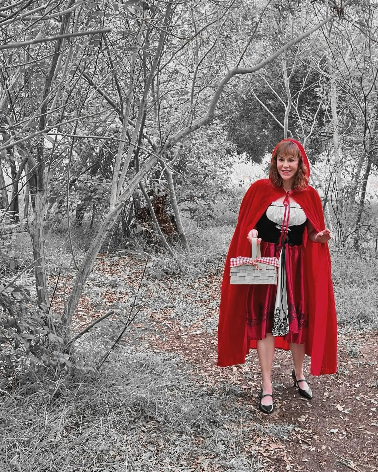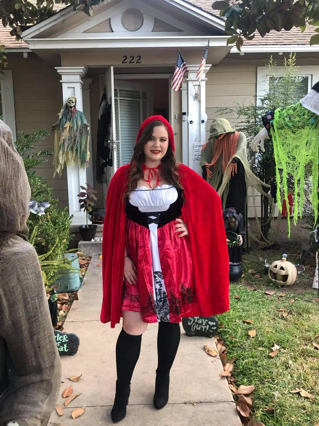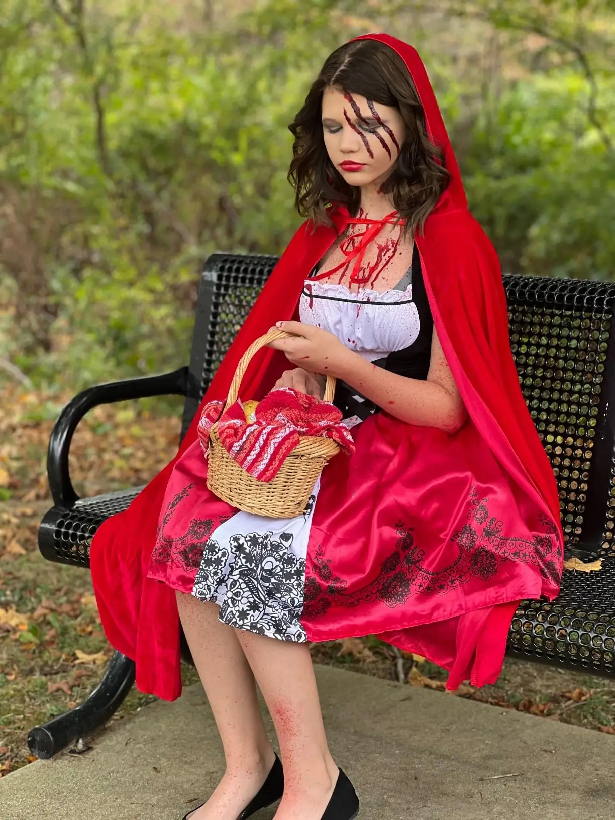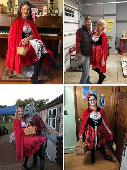 Women's Little Red Riding Hood Costume Halloween Cosplay Little Red Riding Hood Outfit Robe Cloak Full Length Hooded