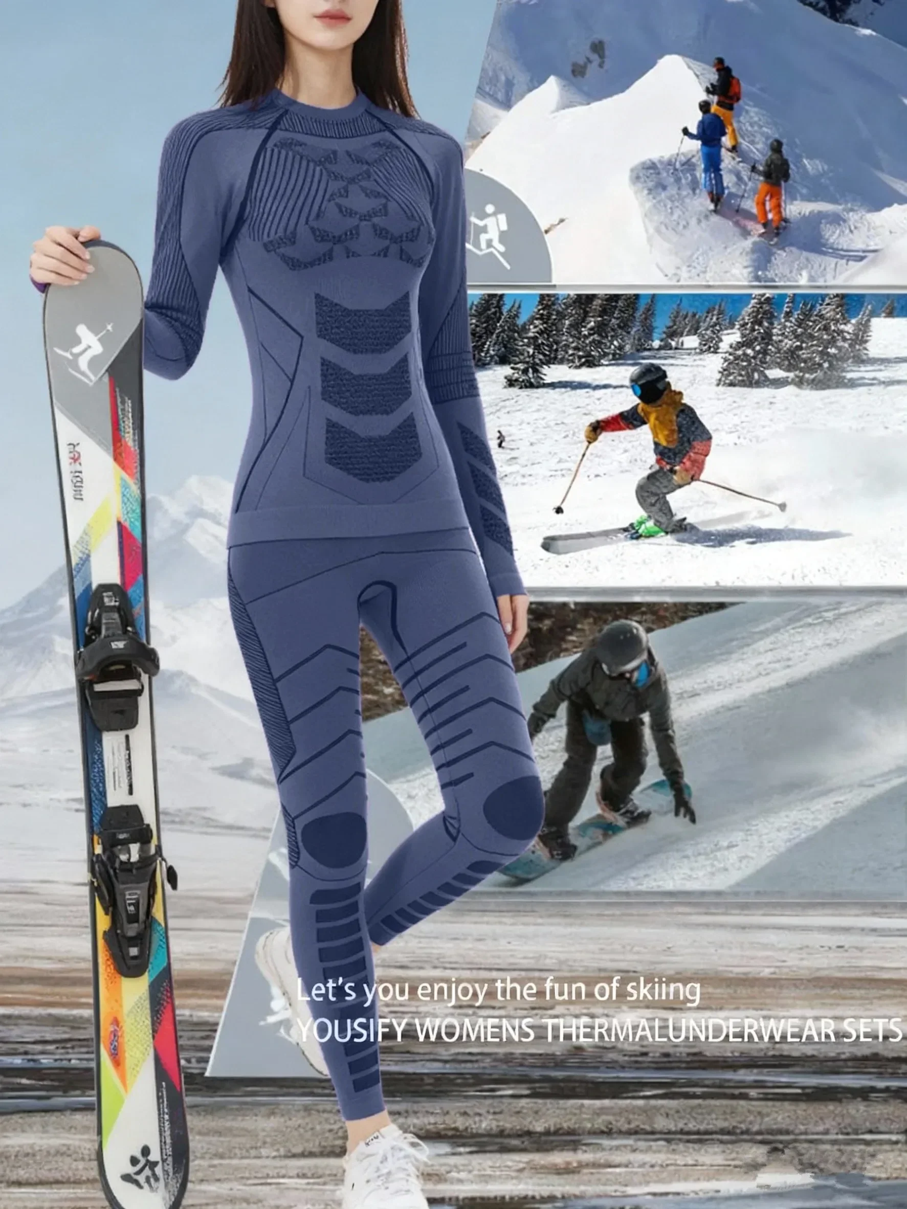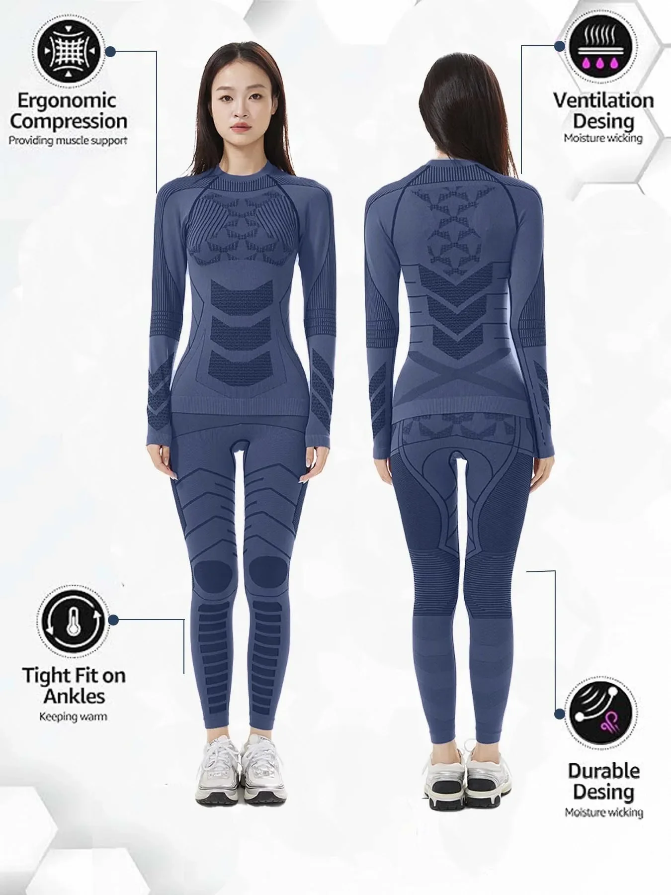 4-Way Stretch Compression Suits: This women's thermal underwear features an anti-abrasion fabric with excellent elasticity and durability, with full stretch to allow for a wider range of movement, providing maximum freedom and support for your body